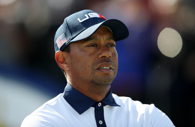 Tiger Woods pictured in action in Paris on Saturday for Team USA. Adam Davy