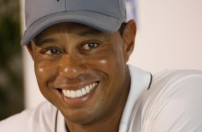 Tiger Woods smiles as he answers a question during a news conference prior to the start of the Quicken Loans National golf tournament. AP/Press Association Images