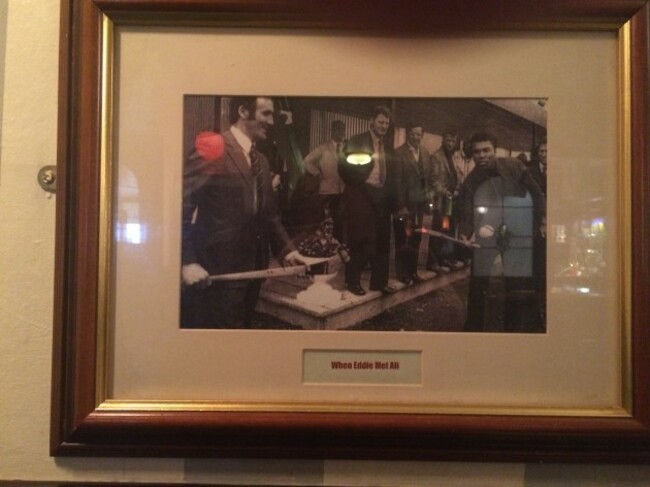 The pub owner proudly shows a framed photograph: hurling legend Eddie Keher and boxer Muhammad Ali, playing keepie-upp with the sliothar on a hurley in 1972.