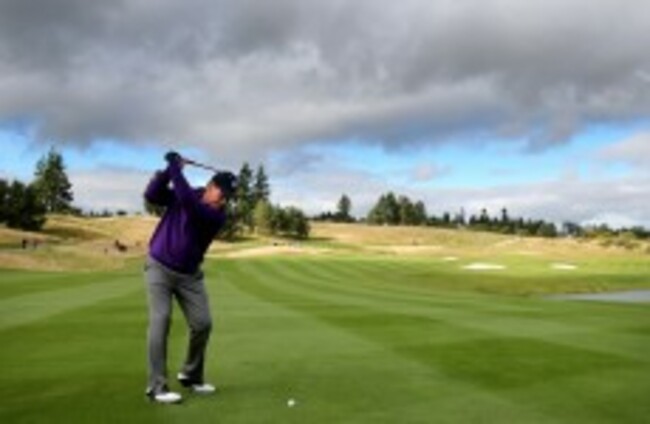 With no possibility of hitting the ball normally after a stray tee-shot on the par-3 eighth hole during the Toshiba Classic, Watson simply turned around and hit the ball backwards.