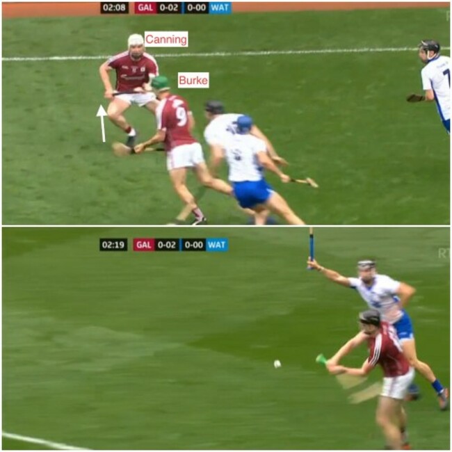 This tactic worked for Galway in the next example, before I’ll show you how it didn’t quite come off for Waterford.