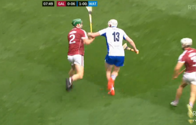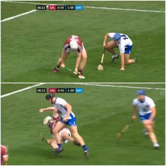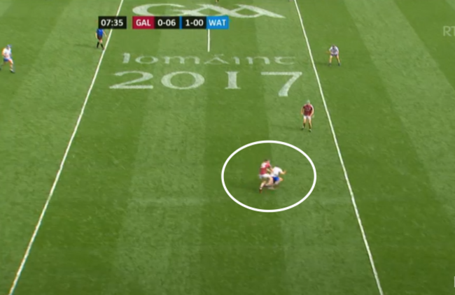 There’s no second tackler coming in from a Galway perspective, because they’re picking up the other Waterford support players, who aren’t even there.