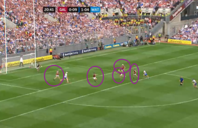 Look, too, at the amount of Galway players inside and around that 20m line – six of them.
