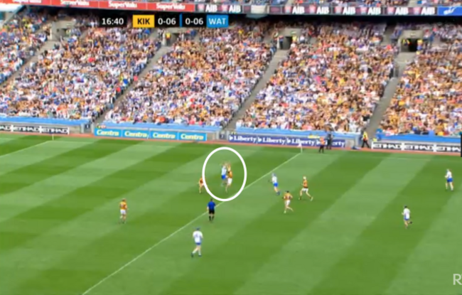 Waterford were tight on their men and another good example was in the 32nd minute when TJ Reid gets out in front of Barry Coughlan initially: