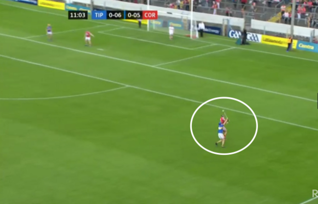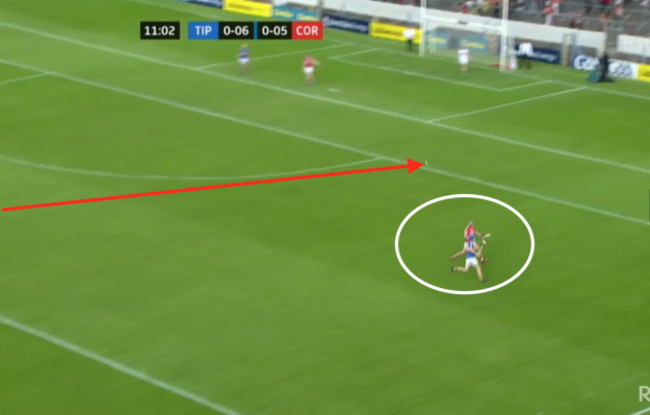 Lehane manages to tip the ball ahead, race onto it and score a point. Here, in the one passage of play and all within a few seconds, Tipp have chances to first of all cut out the puck-out and apply pressure but it doesn’t happen.