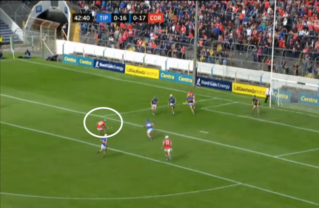 Cahalane has the simple task of picking out a team-mate inside, and Cork are on the move again: