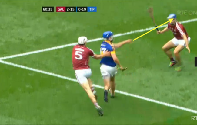 Here’s just one example as first, Galway’s Pádraic Mannion gets possession of the ball: