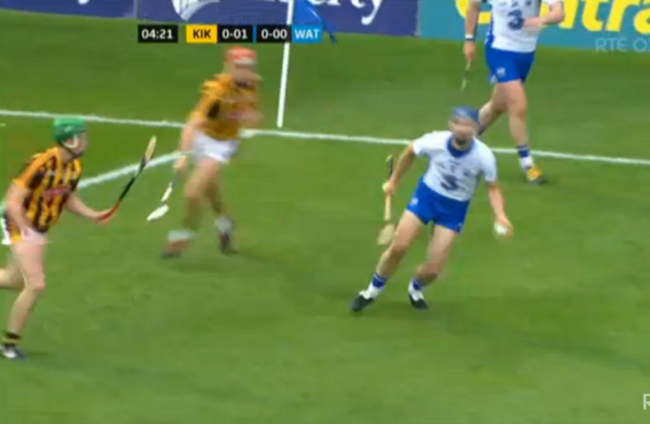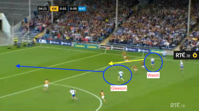 Gleeson takes the ball at full tilt and doesn’t lose a step, meaning that he’s in full flow to go past the Kilkenny defender, before finishing emphatically: