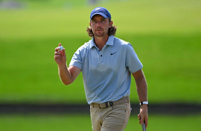 Meanwhile, any of his Fleetwood’s other putative challengers faded, with Scottie Scheffler and Keegan Bradley both going into the water on the treacherous, par-three 15th to make double-bogey and end their challenge.