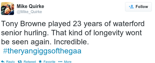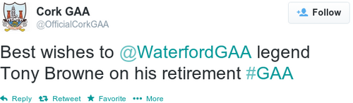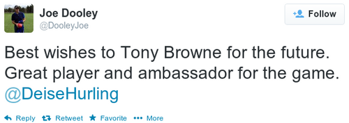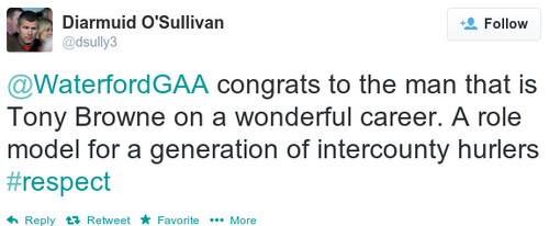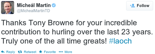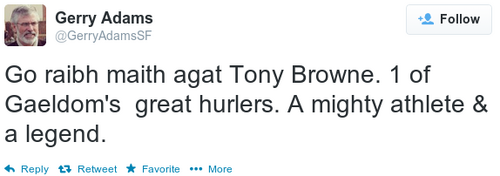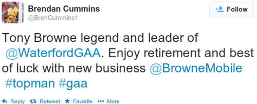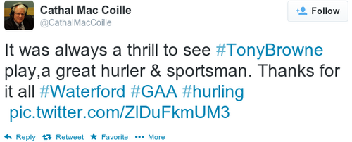 Gerry Adams, Brendan Cummins and Diarmuid O'Sullivan pay tribute as Tony Browne retires