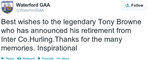 Deise GAA Hurling Saluting A Legend Waterford Tony Browne tributes Twitter