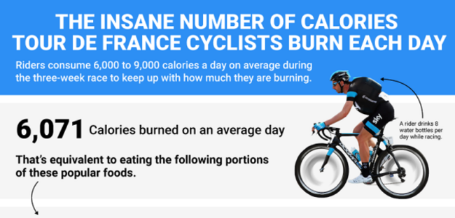 Each day participants ride, on average, about 110 miles and burn some 6,071 calories, according to Inside Science, a science news site run by the American Institute of Physics.