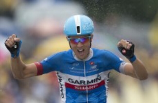 The Garmin rider made his attack 13km from home on a short fourth category climb, passing his teammate and loan escapee Tom-Jelte Slagter before holding on in driving rain all the way to the finish.