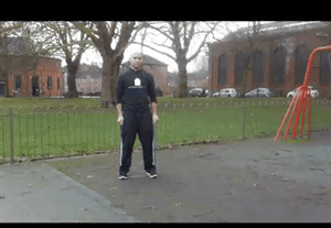 Actions: This can also be done with weights whereby you would have a medium weight in each hand. Keeping your right leg straight, step to the left and bend the left knee. Repeat on the right side.