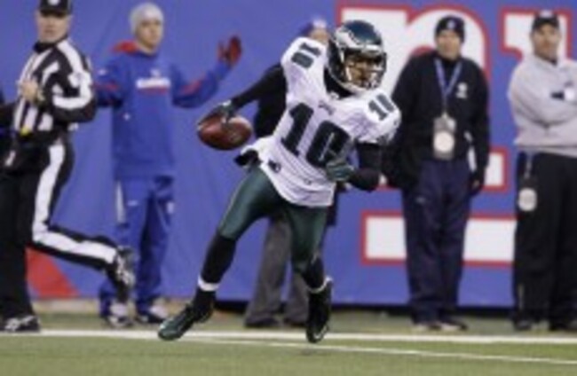 Philadelphia Eagles' DeSean Jackson returns a punt for a touchdown during the final moments of the fourth quarter of the game against the New York Giants at New Meadowlands Stadium. Kathy Willens/AP/Press Association Images