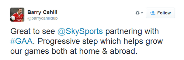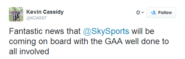Here's how Twitter reacted to the Sky Sports GAA deal
