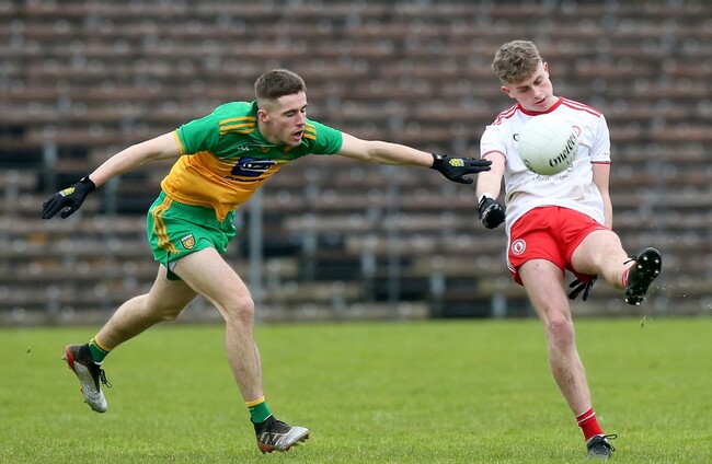 Doherty was denied a goal by a top-class save from Lorcan Quinn on 39 minutes following a Ronan Frain break. The Tyrone goalkeeper managed to push the effort, which was bound for the top corner, onto to crossbar.