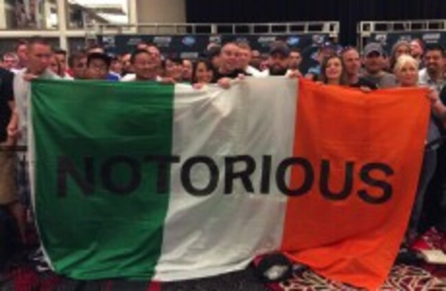 There was some vocal support for UFC welterweight champion Robbie Lawler, but the majority were there to see McGregor. If the tricolours didn’t tell you that, the cacophony of noise that greeted the Irish featherweight did. Approximately 500 fans made it inside the large function room at the MGM Grand. Many more were outside, unable to get in.