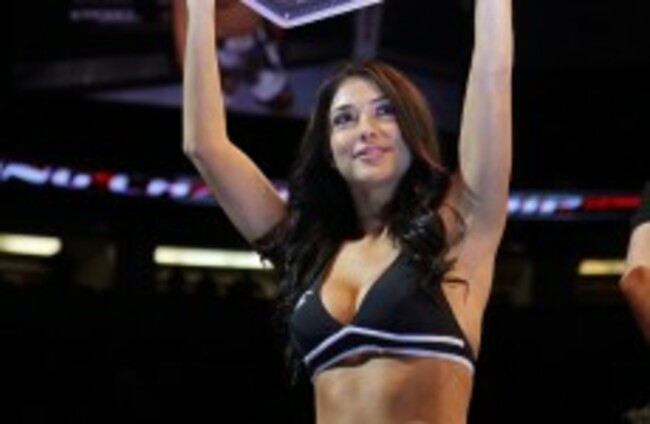 UFC ring card girl Ariyanni Celeste during a mixed martial arts bout at a UFC on FOX event in Seattle, Saturday, Dec. 8, 2012. (AP Photo/Gregory Payan)