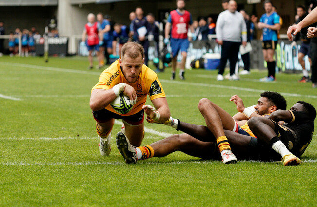 Thirteen minutes later the French struck again, Aubin Eymeri claiming the try after Montpellier had moved the ball to the right wing, allowing the scrumhalf chip over Addison into space and collect to touch down. Foursans-Bourdette again supplied the two points.