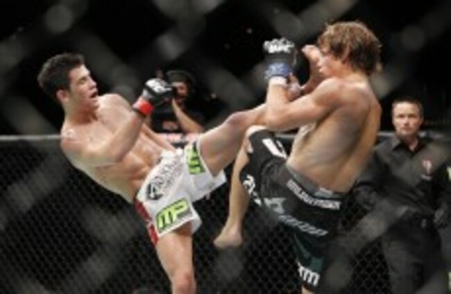 Urijah Faber takes a kick from UFC bantamweight champion Dominick Cruz during their title fight earlier this month. Eric Jamison/AP/Press Association Images