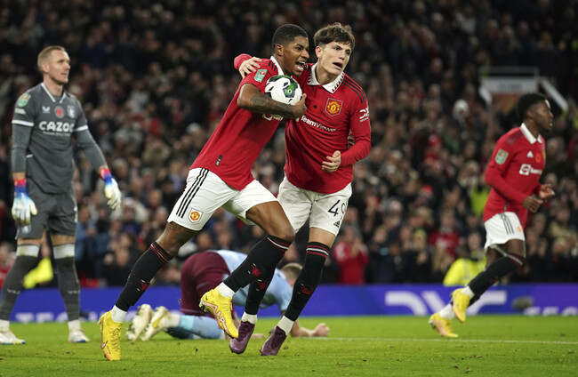 MANCHESTER UNITED TWICE came from behind to beat Aston Villa 4-2 and advance to last 16 of the Carabao Cup.