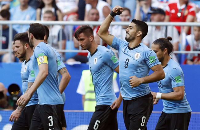 In a fast start, Uruguay were ahead inside 10 minutes as Suarez, who scored the winner against Saudi Arabia on matchday two, found the net with a pinpoint free-kick.