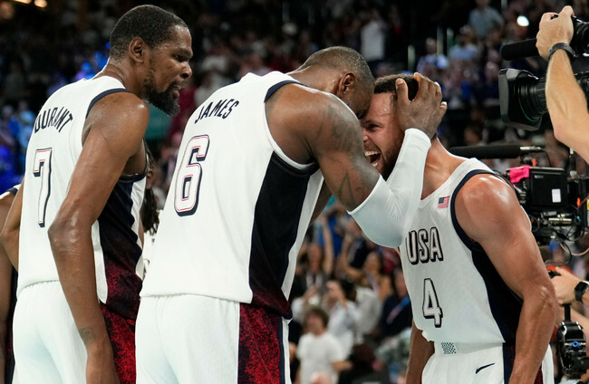 But of course it worked. The US held out for a 95-91 victory, LeBron and Curry screaming in each other’s faces in celebration at the end. LeBron himself went into superhuman mode to get the game over the line at the end, finally dominating defensive rebounds and showing he is still capable of sweeping forward and contorting his body in whatever way is necessary to convert from close range. He’s still doing this, even as streaks of grey infiltrate his beard.