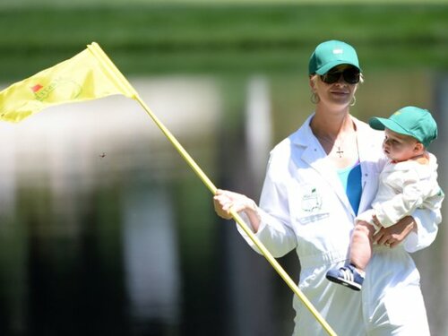 Angie Watson was Bubba's caddie in the Par 3 contest, along with their adorable son Caleb