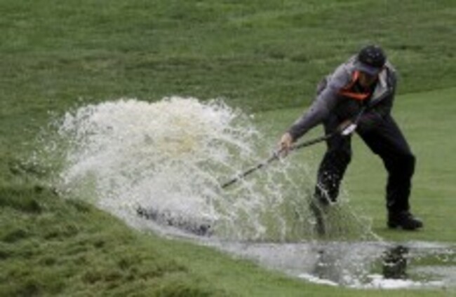 A course worker clears water from the 16th fairway Gene J. Puskar/AP/Press Association Images