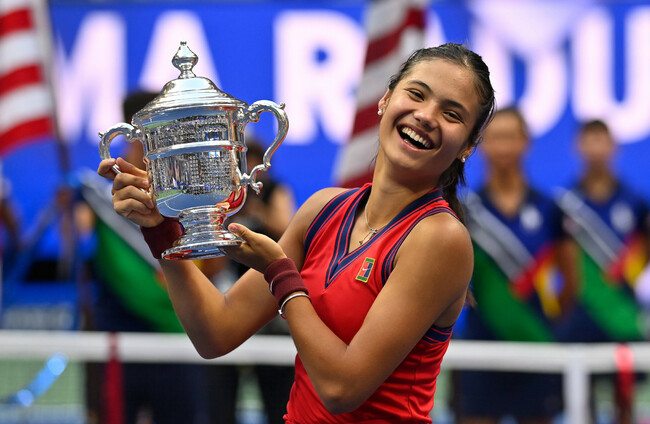 The British 18-year-old beat 19-year-old Canadian Leylah Fernandez 6-4, 6-3 to become the first qualifier to win a Slam title, rolling through 20 sets without loss to hoist the trophy.
