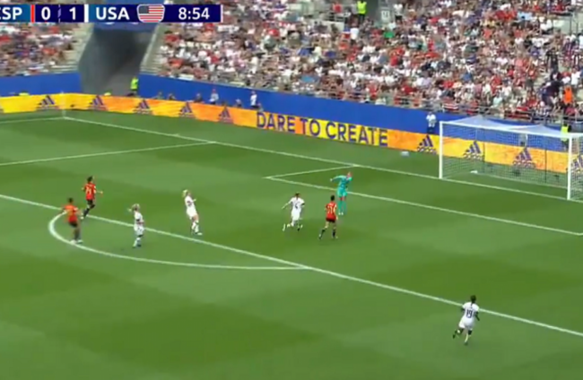 USA 1-0 Spain - Defending champions USA take just seven minutes to open the scoring with Megan Rapinoe netting from the penalty spot #rtesoccerpic.twitter.com/GR4ewxqbU7