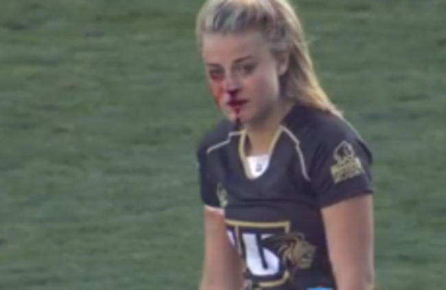 Not even a broken nose could stop this rugby player from smashing her opponent