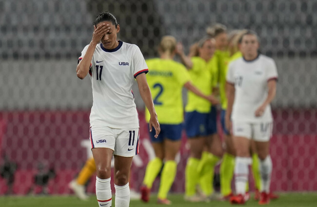 Rose Lavelle, one of stars of the 2019 World Cup, headed against the post at the end of the first half — a crucial miss as Sweden made it 2-0 soon after the break.