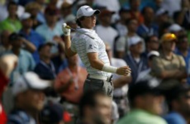 McIlroy hits a drive on the 15th hole. AP Photo/Matt Slocum