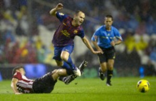 Whatever about game plans or specific players however, the rain was literally the main stumbling block for Barca. Early in the second half, deep puddles were cropping up all over the pitch and both sets of players were sliding around farcically.