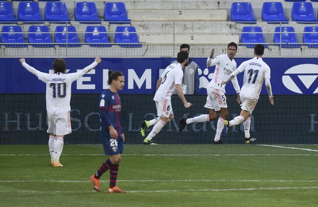 ROCK BOTTOM HUESCA made Real Madrid work for a win in La Liga today as Raphael Varane’s brace was needed to give Los Blancos a 1-2 win.