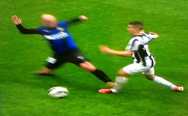 Esteban Cambiasso chops down little Sebastian Giovinco with a horrific tackle