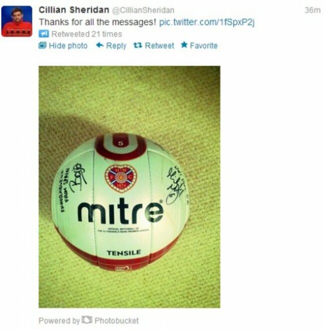 Cavan native Cillian Sheridan helped Kilmarnock continue their early challenge for the SPL with three goals away to Hearts.