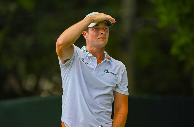 Hovland took his first bogey at 14, finding the left rough and pitching to the green then missing a 22-foot par putt from the fringe.