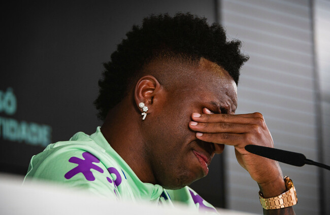 When asked again about the abuse by journalists, an emotional Vinicius Jr replied: “I’m sorry.