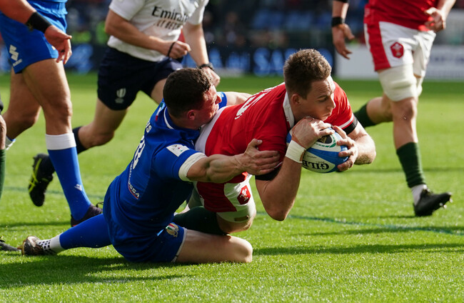 Italy tested Wales via a long-range counter-attack, but they were denied a try by Owen Williams’ superb tackle on Brex.