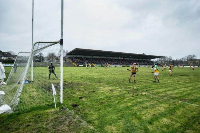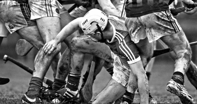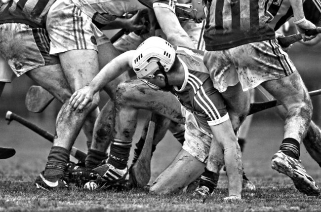 13. The Offaly and Kilkenny hurlers had to get to grips with the difficult underfoot conditions