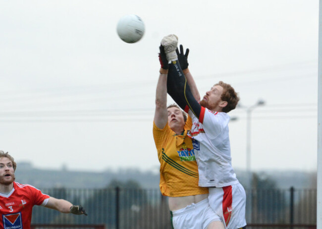 2. Dalton McDonagh and Craig Lynch battle for possession in the O’Byrne Cup in Navan