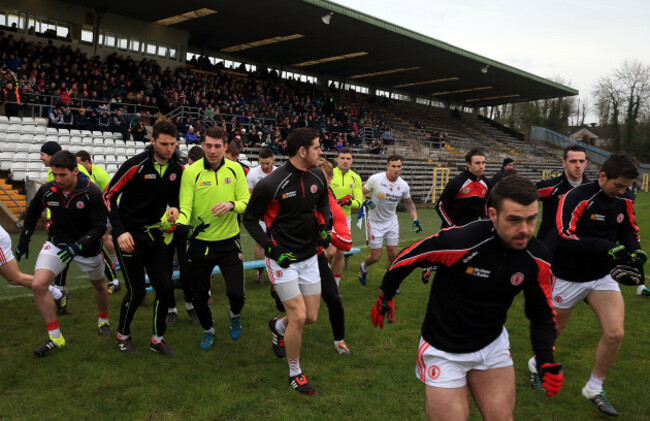 14. The Tyrone players break from the team photo before throw-in in Clones