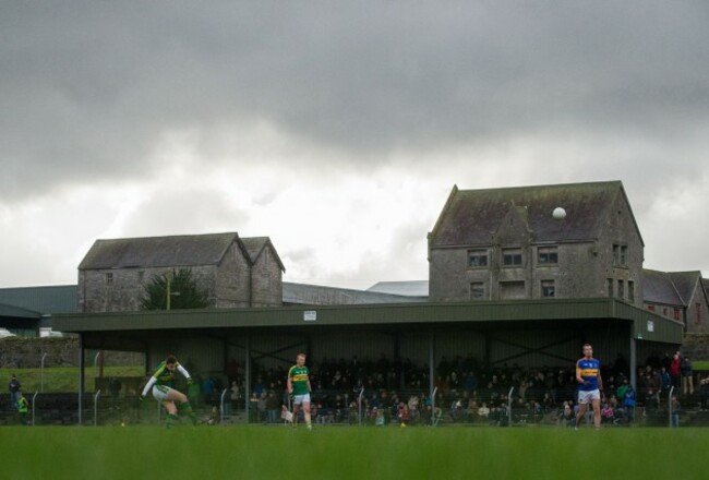 9. Kerry’s David Moran sizes up a free in Tipperary Town in the McGrath Cup today