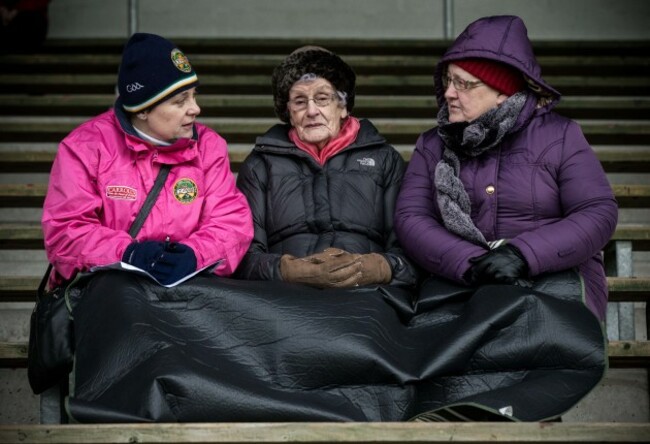 11. Offaly fans Mary Hanley, Muireann Hanley and Agatha Teehan takes their seats early in Birr