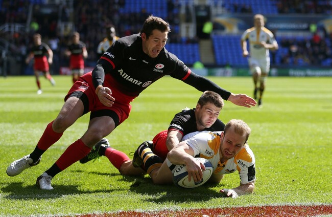 WASPS PRODUCED THE ideal start to today’s Champions Cup semi-final, scoring with their very first set of phases against Saracens.