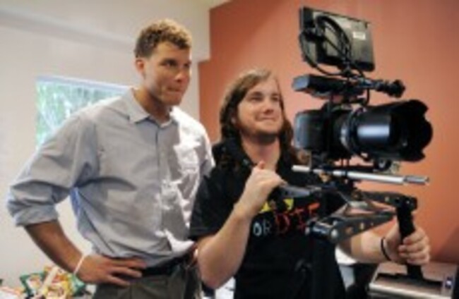 Griffin gets acquainted with the filming equipment. Chris Pizzello/AP/Press Association Images