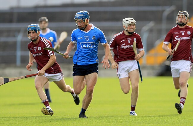 Dublin prise apart the Galway defence as Sean Treacy cuts through but his attempt at a goal is foiled by a hook from defender Fintan Burke.